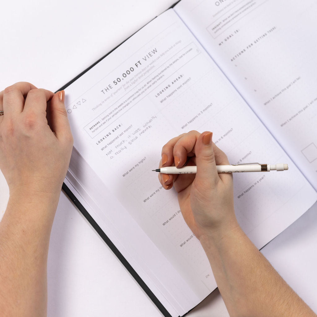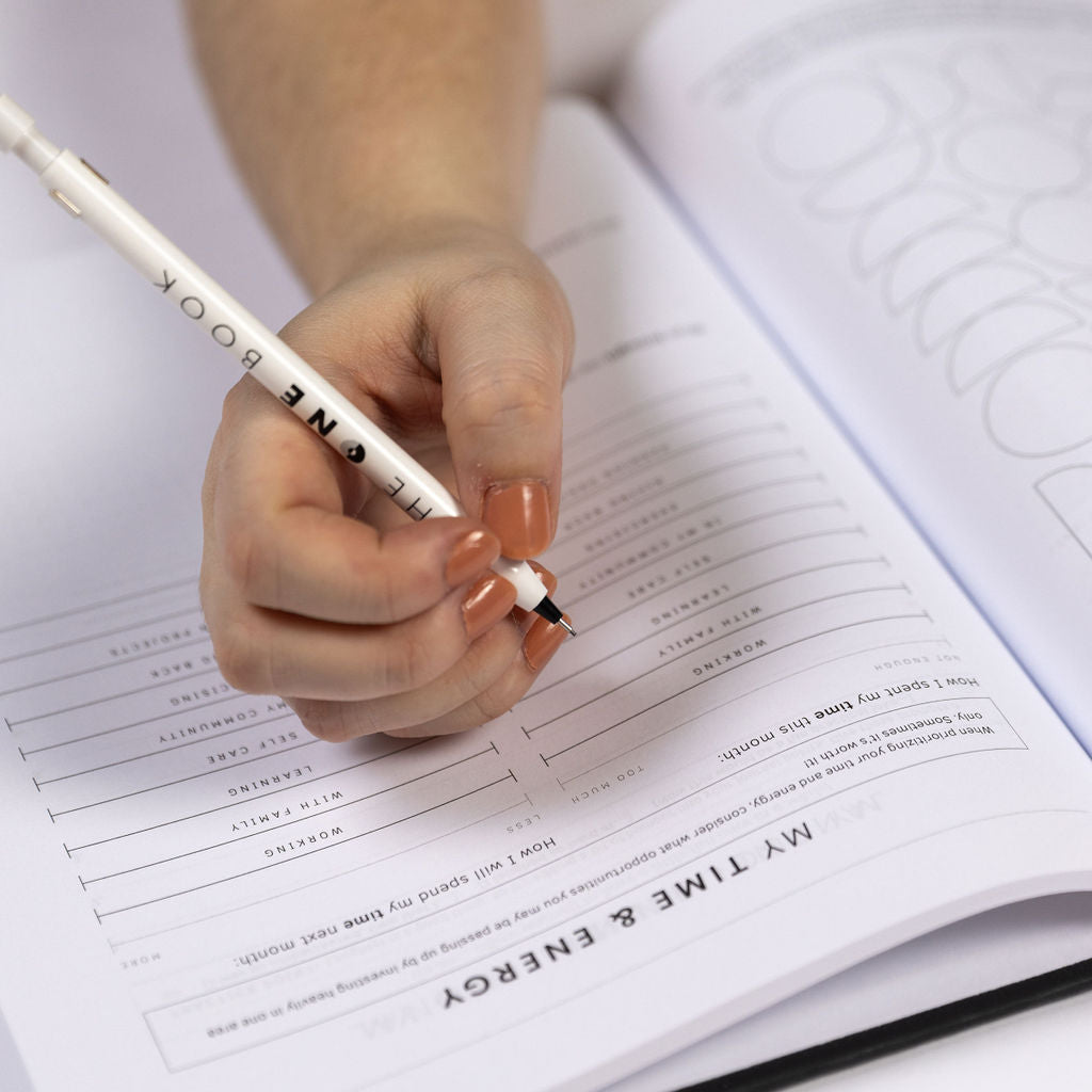 The ONE Book is an all-in-one tool for business owners, entrepreneurs, and leaders. This 365-page book guides you through a full year of planning, goal-setting, reflection and SO more. It is an interactive book that you are invited to (actually strongly encouraged to) write in, draw on, doodle over, and USE as a go-with-you-everywhere kind of book.