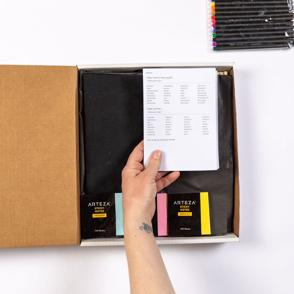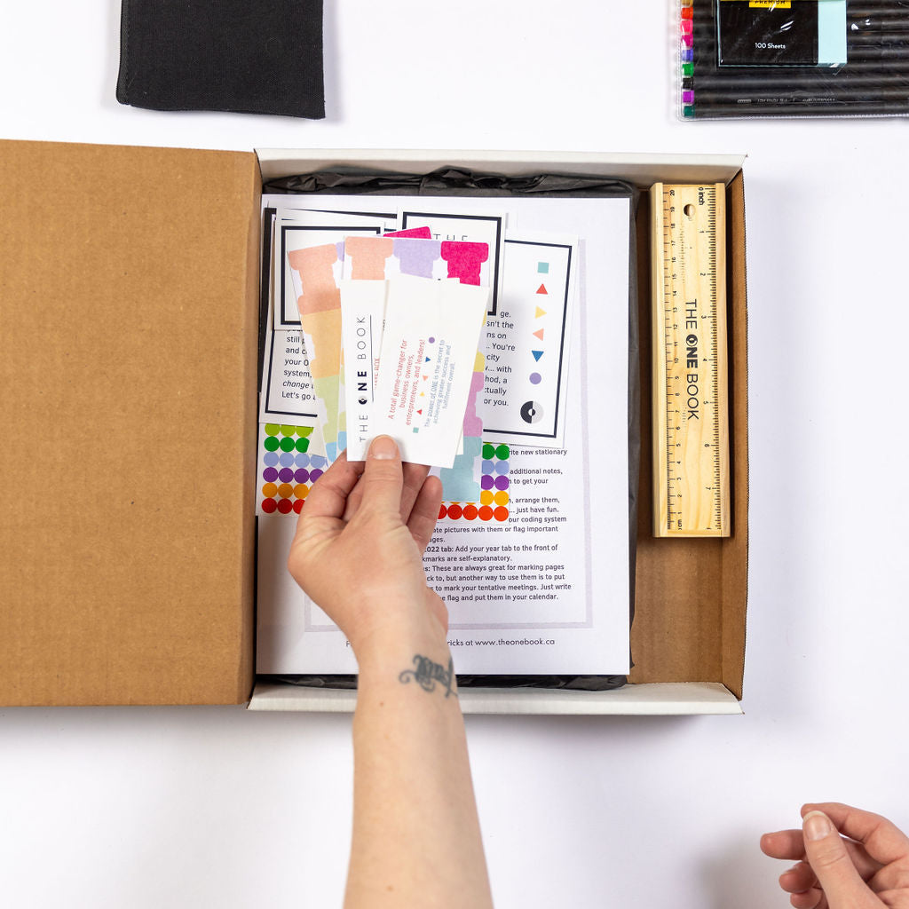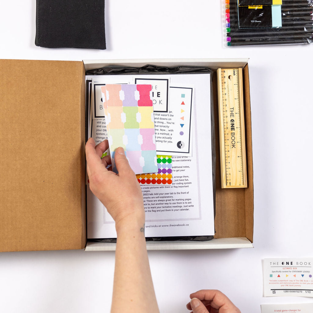This option includes a paperback copy of The ONE Book along with all of the essential tools and accessories you'll need to kickstart your ONE Book journey. We have carefully curated The Ultimate Box with fun and unique items that any stationary-lover would cheer about. Here's what's included: